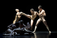 Mit einem ebenso fulminanten wie nachdenklichen Ballettabend setzen das slowenische Staatsballett Ljubljana und das Stadttheater Klagenfurt ihre erfolgreiche Kooperation der letzten Jahre fort. Boléro vereint zwei für großes Orchester komponierte Klassiker des modernen Balletts mit der romantischen Schwermut von Chopins Nachtstücken für Klavier. Seinen Titel erhält der Abend vom berühmtesten Werk Maurice Ravels. Er schuf den Boléro im Auftrag der russischen Ballerina Ida Rubinstein, doch in der Tanzgeschichte gilt vor allem die Interpretation von Maurice Béjart aus dem Jahr 1961 als Meilenstein. Choreograph Renato Zanella geht von Ravels musikalischem Grundgedanken des Kampfes um die Vorherrschaft zwischen Rhythmus und Melodie aus und unterstreicht, dass die Schönheit der Melodie in einer direkten Konfrontation mit der Kraft des Rhythmus selten als Siegerin vom Feld geht. »Sei still«, scheint Edward Clug uns mit seiner beredten Choreographie Ssss … zur Musik von Frédéric Chopin zuzuflüstern. Doch es ist keine autoritäre Aufforderung zum Schweigen, die den Raum durchschneidet, sondern eine sanfte Beruhigung, die den weiteren Fortgang offenlässt. In der Choreographie zu Igor Stravinskys revolutionärer Ballettmusik Le Sacre du printemps setzt sich Renato Zanella mit der Erkenntnis auseinander, dass das vom Menschen im Laufe der Geschichte am beharrlichsten praktizierte Ritual der Krieg ist: Wir opfern den Frieden, um Frieden zu gewinnen. Fotocredit: (c) Darja Štravs Tisu
