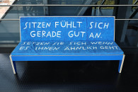 Die in Wien lebende Künstlerin Maruša Sagadin, bekannt für ihre schrägen skulpturalen Interventionen, wurde vom Kunsthaus Graz eingeladen, eine ortsspezifische Intervention für den Vorplatz des Hauses zu entwerfen. Als Antwort auf die Umgebung und das Haus entstand der Entwurf für eine mehrteilige, raumgreifende Skulptur. Sie besteht aus Granitsteinen mit hölzernen Sitzflächen, bietet Raum und Witz und ist einladend bunt bemalt. Für den Stadtraum kombiniert das temporär geplante Projekt skulpturale Elemente, die einerseits Markierungen für das Haus und seine Inhalte darstellen und andererseits ein Angebot an Passant*innen und Wartende sind, sich niederzulassen und sich mit dem Ort zu beschäftigen. Das Zentrum der Arbeit bildet eine skulpturale, röhrenförmige Hängevorrichtung mit einer überdimensionalen, ca. 1 m hohen, gelb lackierten Birne. Speak More Truth, Eat More Fruit zitiert einen Song der Rapperin Speech Debelle und ist zugleich Aufforderung und Verweis auf die Wurzeln der Künstlerin, die Elemente der Street-Art-, Pop-, Comic- und Hip-Hop-Kultur vereint. Sagadins Arbeit bricht lustvoll mit etablierten Codes und legt dabei sensibel soziale Ein- und Ausschlussmechanismen im urbanen Raum offen. Kuratiert von Katrin Bucher Trantow Kooperation mit Marko Hotels (Bild: © Maruša Sagadin, Christine König Galerie, Wien, Bildrecht, Wien 2025)