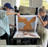 Auftrag wasserbasierter Farbe mittels Pinsel auf den Druckstock, Verreiben der Farbe mit Bürsten, Drucken im Handabzug mit einem japanischen Abreiber (Baren) auf angefeuchtetes Papier – dieser Kurs vermittelt die handwerklichen Grundlagen der Technik des japanischen Farbholzschnittes. Ausgehend von einer einfachen Bildidee, wird diese mit maximal 3 Platten umgesetzt. Beim Druck können verschiedene Japanpapiere ausprobiert werden.